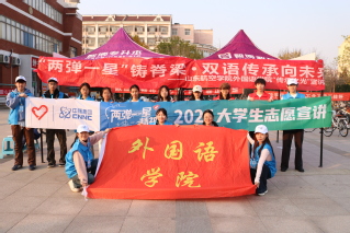 为传承“两弹一星”精神,弘扬爱国奉献的时代内涵,2025年11月4日,外国语学院“传承之光”双语宣讲团于钟书园广场举办“追溯两弹一星史,传承爱国奉献魂”主题宣讲与志愿服务活动。活动面向全校师生,生动诠释了“热爱祖国、无私奉献,自力更生、艰苦奋斗,大力协同、勇于登攀”的“两弹一星”精神内核。“两弹一星”精神,不仅是新中国科技自立自强的巍峨丰碑,更是融入中华民族血脉的坚韧品格。作为2025年全国大学生“两弹一星”精神志愿宣讲团的代表,外国语学院“传承之光”宣讲团立足专业,以语言为桥、以文化为媒,通过严谨的叙事与创新的形式,让那段峥嵘岁月焕发时代光彩,使科学家精神在师生心中落地生根,彰显了新时代青年的思想自觉与使命担当。活动现场设置知识问答与故事分享两大互动区域。问答环节以随机卡片引导思考,引导学生思考两弹一星精神;故事分享区则气氛热烈,宣讲团动情讲述于敏、郭永怀等功勋科学家的感人事迹,在追忆与共鸣中,完成了一场跨越时空的精神对话。外国语学院以此活动为契机,持续深化红色资源育人效能,探索精神传承的创新路径,引导广大师生以“两弹一星”元勋为楷模,在赓续红色血脉中锚定理想信念,在投身社会实践中锤
