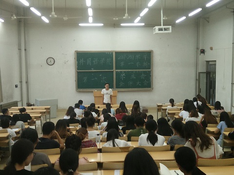 为进一步规范学生会干部的日常行为,提高我院学生会成员办事效率。9月25日,外国语学院于1号教学楼107教室召开此次2017-2018学年第一学期学生会全体大会。全体学生会成员参加此次会议,辅导员马盛楠指导此次活动的进行。