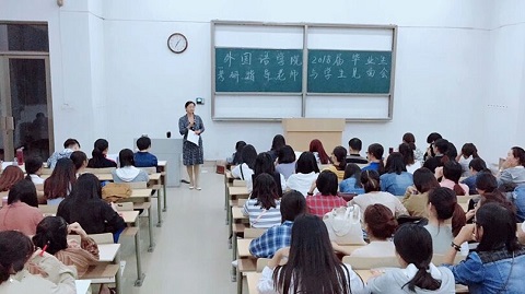为了让2018届学生对专业领域领域有更深刻的理解,明确考研定位。9月28日,外国语学院于1号教学楼106教室举行2018届毕业生与考研指导老师见面会!。外国语学院院长孟丽华、各位指导老师及全体考研学生参加此次见面会。
