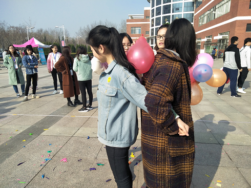 为了帮助同学们保持健康良好的心理状态,积极营造幸福的大学生活,使同学们在大学的“航程”中健康、快乐的成长,3月24日,外国语学院于二餐广场参加了第六个“国际幸福日”活动。2017级部分同学参加了此次活动,辅导员马盛楠亲临现场,与同学们一起享受美好的活动时光。