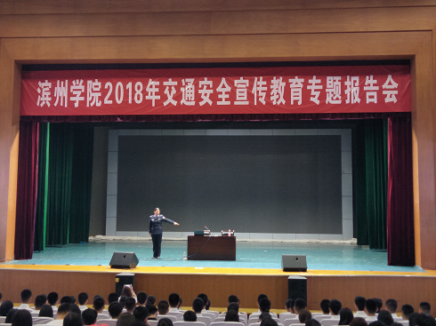 为提高同学们的交通法治意识、安全意识和公德意识,保障学生的人身安全,推动校园交通安全长效机制建设,3月27日,外国语学院于学苑会堂参加滨州学院2018年交通安全宣传教育专题报告会,滨州市警官董爱荣作为主讲人,2017级部分学生及辅导员马盛楠参加了本次交流会。