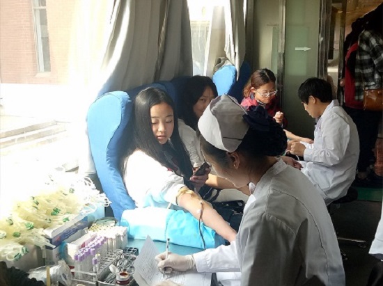 为使同学们深刻了解无私奉献的志愿精神,体会到生命的可贵,4月1日,外国语学院于西餐厅广场积极参加了“学雷锋”大学生无偿献血活动,2017级部分同学参加了此次献血活动,辅导员马盛楠密切关注献血活动的进行。