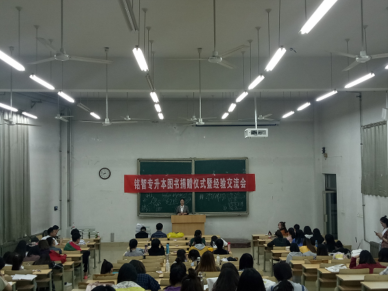 为使我院同学建立专升本考试信心,汲取更多专升本经验。4月9日,外国语学院于1号教学楼309教室举办“铭智专升本图书捐赠活动暨专升本经验交流会”活动。2016级全体专科同学参加了此次活动,辅导员马盛楠指导此次活动的进行。