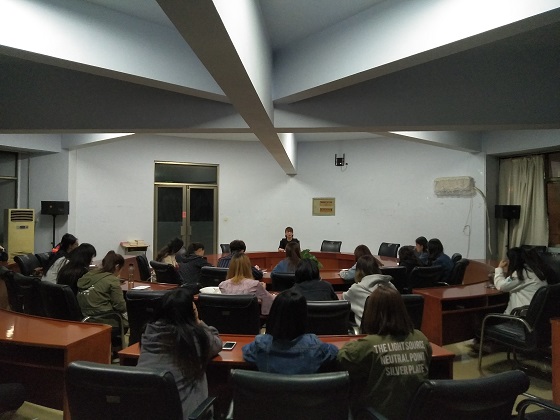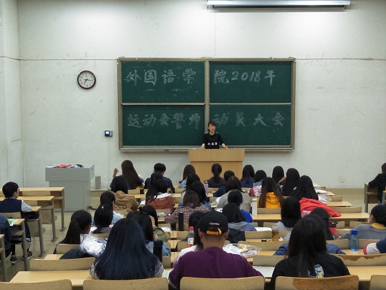 为调动学生参与运动会的积极性,合理安排运动员训练等相关事宜,4月17日晚,外国语学院在 1号教学楼106教室、201会议室举行校运动会誓师动员大会。外国语学院2018年全体运动员、方队训练人员及学生会全体人员参加此次大会,辅导员马盛楠作为主讲人,鼓励全体在场人员。