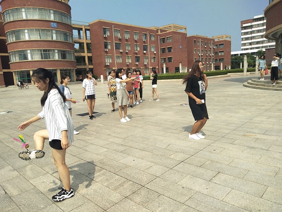 新学期开始,我院延续上学期优良习惯,举办课间活动。活动开始前,各班体育委员向各班重新宣传了课间活动的内容,鼓励同学们积极参与到课间活动中,努力锻炼身体。大课间伴随着欢快而富有节奏的音乐声如约而至,新学期第一个进行课间活动的班级迈着整齐的步伐来到聚英湖畔,进行了跳大绳、踢毽子等多种形式的活动。一时间欢声笑语,呐喊加油声萦绕聚英湖畔,展示出外国语学院学子独有的蓬勃朝气、青春风采。