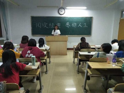 此次班会主要由主题朗诵、班会讨论和总结点评三个部分组成。会议伊始,各班班委组织同学们上台发言,讲述假期阅读的经典,并分享阅读的心得。随后,同学们以宿舍为单位,开展讨论,互相交换阅读意见,以及在阅读过程中产生的疑问或不同的见解。紧接着,各班班主任根据近期同学们对中西名著阅读的情况,强调同学们要多读书,读好书,同时也在做好读书笔记、积累阅读技巧、注意及时反思顿悟、学会举一反三等方面对同学们提出了要求,最后,班主任鼓励同学们闲暇之余要积极扩充课外知识,提升文化修养。