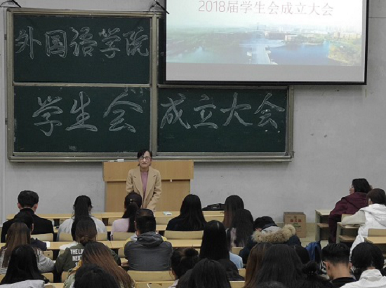 为了给学生会注入新的血液,调动同学们的工作激情,总结工作经验,更好的服务同学,11月3日,外国语学院于1号教学楼107室召开了学生会换届大会,学生科科长苏成荣、外国语学院2017级学生会干部及2018级新干事参加了本次活动。