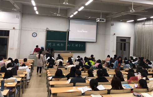 为了缓解同学们紧张的学习压力,提高英语听力水平和能力,11月9日,外国语学院于1号教学楼308教室举行了“周末放映室”观影活动,2018级全体同学参加了此次活动。