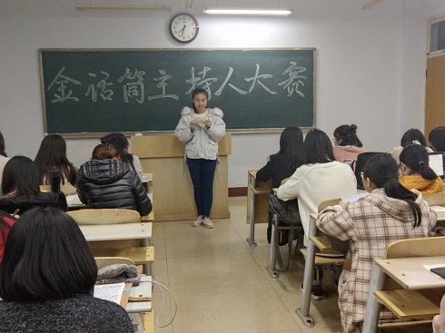 为了展现外国语学院同学积极向上的精神面貌,培养同学的语言表达能力,发掘主持人才,提高同学们的综合素质,11月12日,外国语学院于1号教学楼304教室举办金话筒主持人大赛,2018级同学参加了此次比赛。