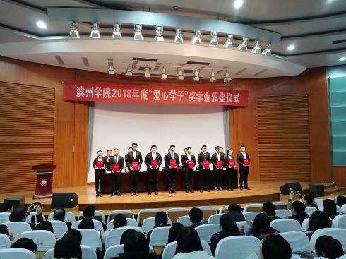 12月18日,外国语学院学生代表于学苑会堂第二报告厅参加了滨州学院2018年度“爱心学子”奖学金颁奖仪式。