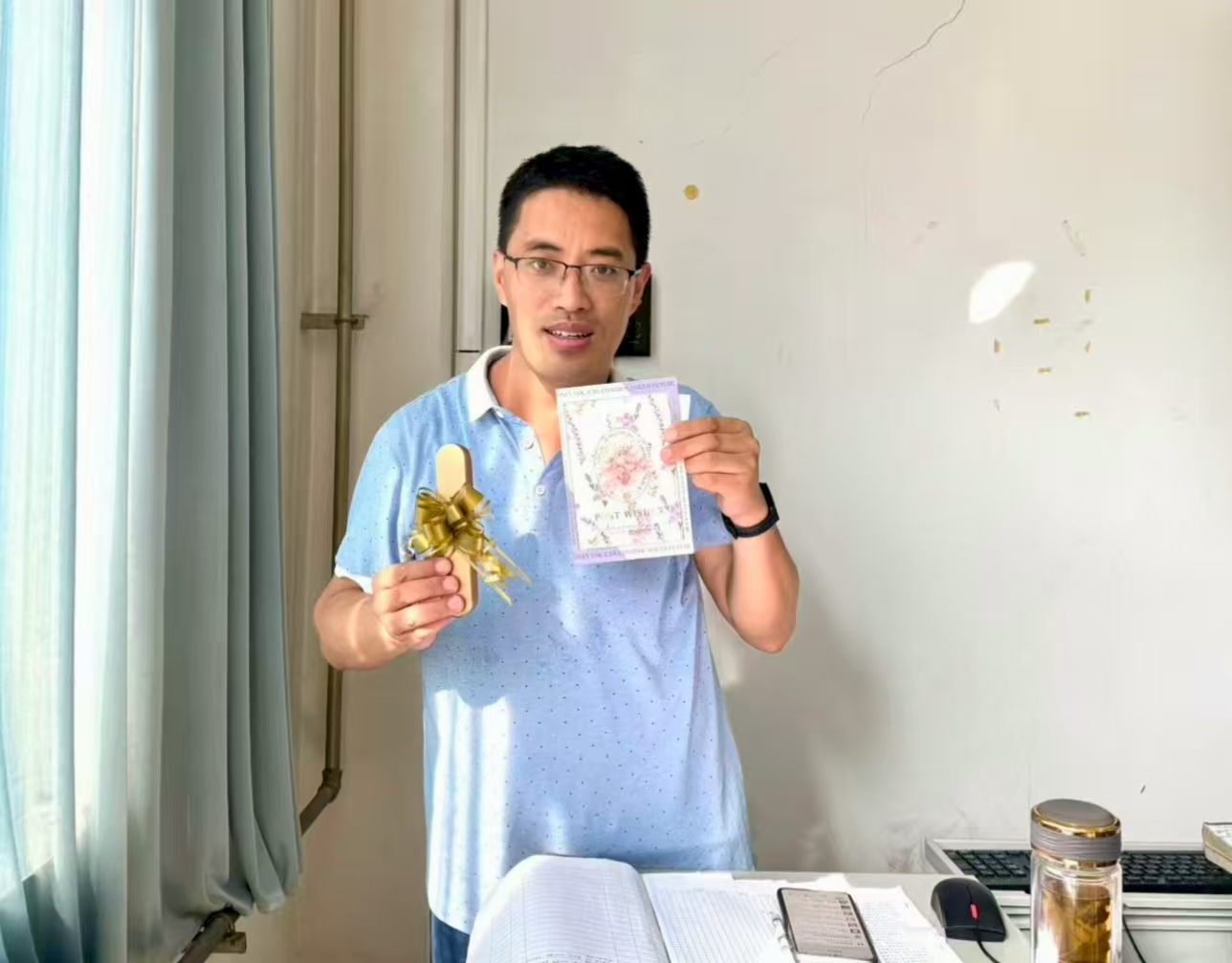 当天,学生代表们手持亲手书写的贺卡和准备好的礼物,向每位老师鞠躬致意,送上真挚的祝福,并把饱含心意的礼物递到老师手中。老师们接过礼物时笑意盈盈,与学生亲切交谈,询问他们的学习近况,现场洋溢着温馨融洽的氛围。这一互动不仅展现了师生间的深厚情谊,表达了学生对教师传道授业解惑的感恩之情,更彰显了外国语学院学生懂感恩、知礼仪的良好风貌。