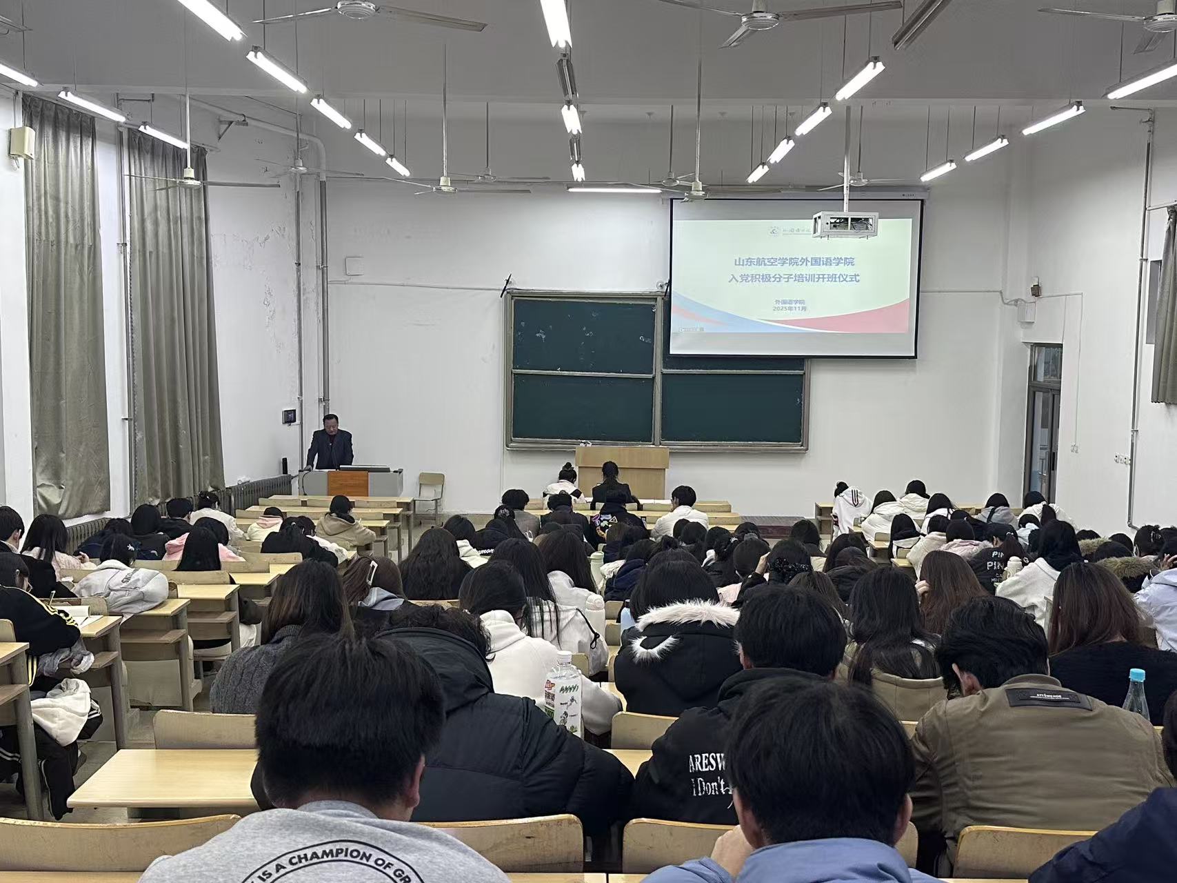 为强化入党积极分子思想引领,夯实党员发展工作基础,11月9日,外国语学院于1号教学楼309教室举行入党积极分子培训开班仪式暨学院党委书记讲党课。学院党委书记张建,全体辅导员及2025年下半年入党积极分子参加活动。