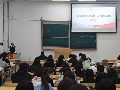 为加强新生思想政治引领, 引导学生科学规划大学生涯、明晰发展方向,3月15日,外国语学院党委书记张健于1号教学楼309教室,为2025级全体学生讲授专题思政课。课程围绕青年成长、学业发展与职业规划等内容展开,帮助新生扣好大学阶段“第一粒扣子”。